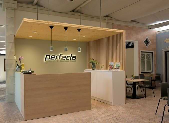 rückleuchtende Logobuchstaben im Ausstellungsbereich