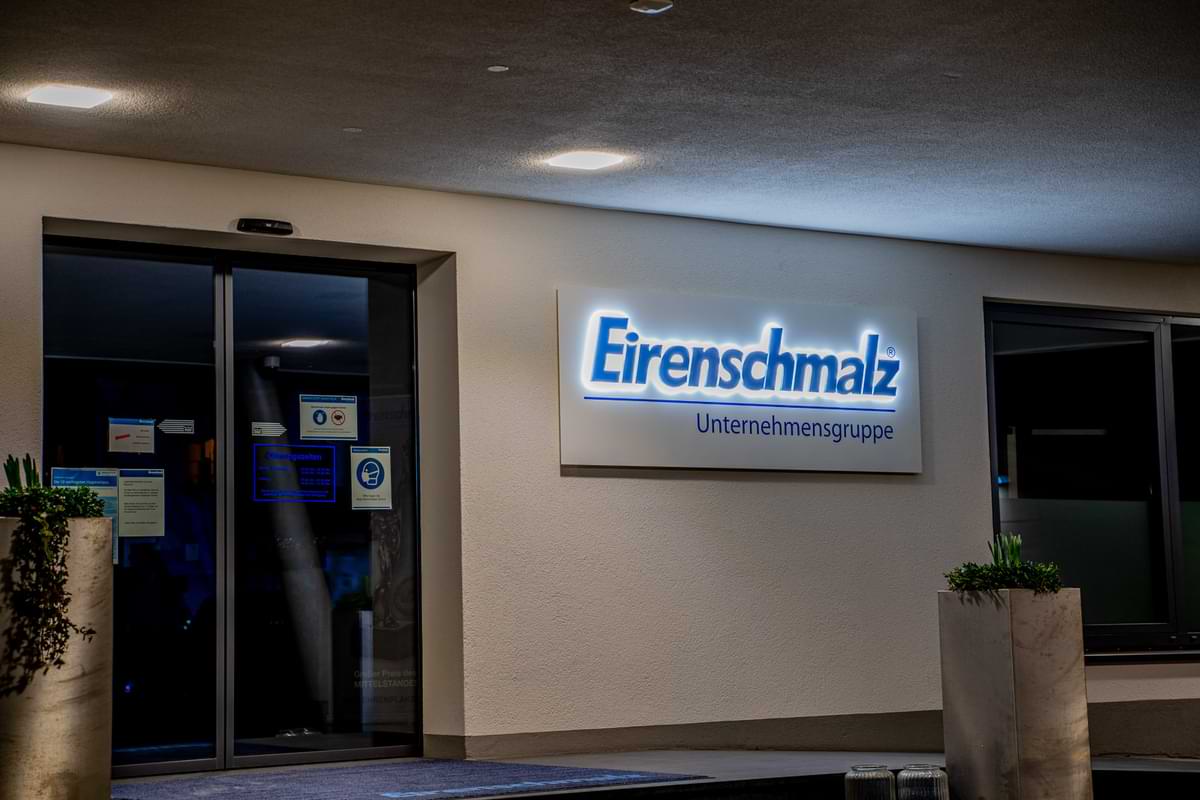 beleuchtete 3D-Buchstaben fertig verkabelt und vorinstalliert auf einer Montagewanne